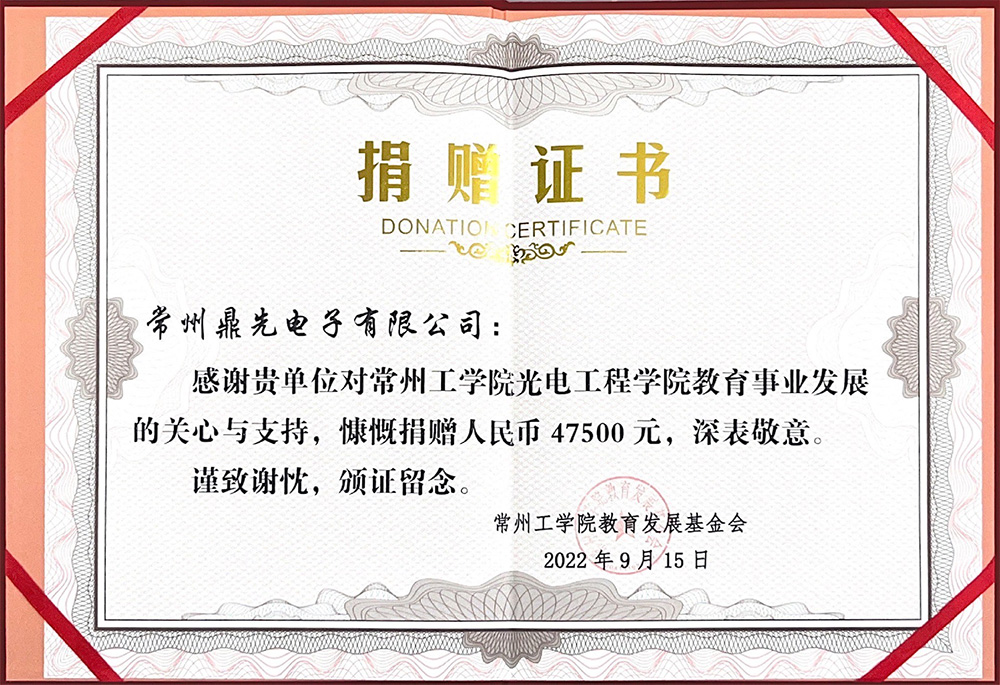 近日,常州鼎先电子有限公司在常州市新北区新桥街道的引领下,向常州工学院光电工程学院教育事业发展慷慨捐赠人民币47500元。这一善举不仅体现了企业关注教育、关爱学子的真挚情怀,也进一步推动了我市高等教育事业的发展。 常州鼎先电子有限公司,自创立以来,始…